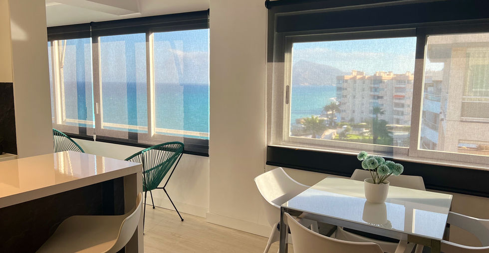 Disfruta del paraíso frente al mar en este encantador apartamento completamente reformado, situado en una de las zonas más privilegiadas de Cap Negret, Altea.El sonido del mar, la luz natural y las vistas panorámicas crean una experiencia única de bienestar y relax.Características principalesSuperficie: 60 m²Dormitorios:1Baños:1Planta: 5ª - Primera línea de playaOrientación: Sur – vistas directas al marEl apartamento combina comodidad, estilo y diseño moderno, con una distribución pensada para aprovechar al máximo la luz y las vistas al mar desde cada rincón.Cocina totalmente equipada, con electrodomésticos nuevos y modernos: horno-microondas todo en uno. Dispone de barra americana abierta al luminoso salón.Amplio salón con cómodo sofá cama ideal para descansar mientras disfrutas de las impresionantes vistas al mar.Dormitorio principal con cama doble y gran ventanal al mar, que garantiza un descanso reparador con el sonido de las olas.Baño renovado con ducha de diseño, materiales de alta calidad.Terraza privada cubierta tipo galería, perfecta para contemplar los atardeceres sobre el mar o desayunar con vistas inigualables.Comodidades y extrasAire acondicionado frío/calor en salón y dormitorioExcelente aislamiento y acabados de alta calidadAcceso directo a la playaUbicación excepcionalSituado en la mejor zona de Cap Negret, frente al mar y junto a todos los servicios: supermercados, restaurantes, farmacia y paradas de transporte.A tan solo 4 minutos en coche o 15 minutos caminando del centro de Altea, con su encantador casco antiguo y ambiente mediterráneo.